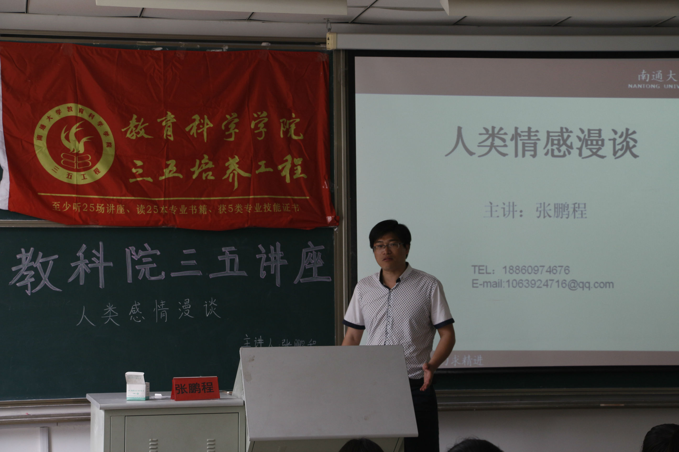 5月25日14时,ACG动漫 在7号楼308成功举办三五讲座之人类情感漫谈,此次讲座邀请的主讲人是ACG动漫 应用心理系讲师张鹏程博士。应用心理系70余名本科生参与了此次讲座。