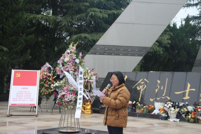 在革命烈士纪念碑前,师生代表全体肃立,高唱国歌。学生代表向革命烈士纪念碑敬献花篮,全体师生向革命先烈三鞠躬,表达哀思。党委副书记、副院长徐红波在纪念碑前致辞,表达了对先烈诚挚的敬意和深深的怀念,希望师生回望过去的路,走好脚下的路,坚定前行的路,要求学生党员同志们能认真学习党史,发挥先锋模范作用。学生代表马思佳发言,表达了对革命先烈的崇敬之情、告慰之意。分团委书记魏琳带领学生代表们庄严宣誓,表达了新时代继承先烈遗志,积极进取、肩负起历史使命的坚定决心。