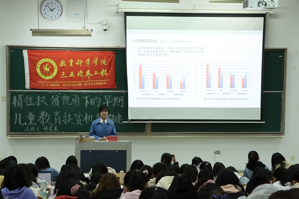 2021年3月31日13:30,ACG动漫 在主校区4号教学楼105教室成功举办了以“精准扶贫视角下的早期儿童教育扶贫机制构建”为主题的三五讲座。此次讲座由杨晨晨老师主讲,来自教科院的260余名学生参加了本次讲座。