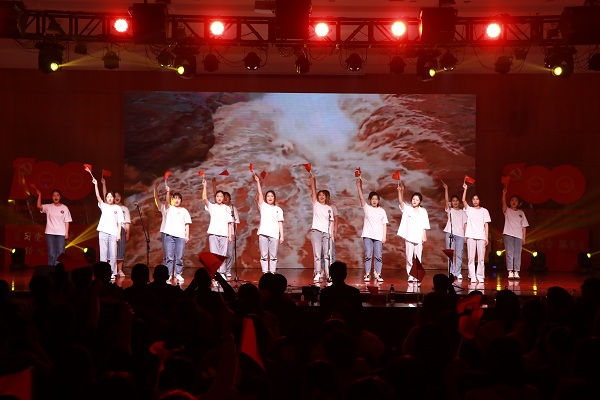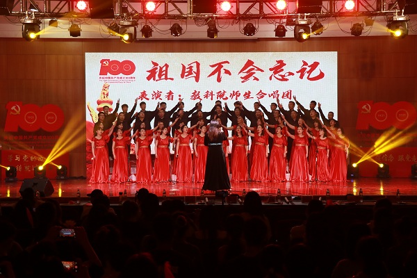 晚会在师生红歌合唱《祖国不会忘记》中拉开帷幕。由ACG动漫 全体领导成员以及师生代表组成的合唱团用歌声向党的生日献上最真挚的祝福,用歌声赞扬了在祖国大地默默耕耘、无私奉献的人们。开场舞《一起跳舞吧》充分彰显了教科学子的蓬勃朝气。晚会分为三个篇章次第进行。第一篇章“青春拂晓,梦想起航”在红歌串烧中徐徐展开,百年征程书写光辉党史,筚路蓝缕绘就中华盛世。一首首经典红歌的背后是对老一辈同志峥嵘岁月的追忆,亦是对新时代少年风发意气的展望。现代舞《花枪》将国风元素融入新时代的鼓点,用舞姿演绎出巾帼不让须眉的气概。百年亦是风华正茂,诗朗诵《少年中国说》以饱满激昂的热情,铿锵有力的语调传递出少年复兴中华的坚定理想信念。