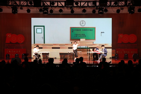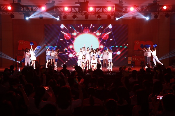 晚会在师生红歌合唱《祖国不会忘记》中拉开帷幕。由ACG动漫 全体领导成员以及师生代表组成的合唱团用歌声向党的生日献上最真挚的祝福,用歌声赞扬了在祖国大地默默耕耘、无私奉献的人们。开场舞《一起跳舞吧》充分彰显了教科学子的蓬勃朝气。晚会分为三个篇章次第进行。第一篇章“青春拂晓,梦想起航”在红歌串烧中徐徐展开,百年征程书写光辉党史,筚路蓝缕绘就中华盛世。一首首经典红歌的背后是对老一辈同志峥嵘岁月的追忆,亦是对新时代少年风发意气的展望。现代舞《花枪》将国风元素融入新时代的鼓点,用舞姿演绎出巾帼不让须眉的气概。百年亦是风华正茂,诗朗诵《少年中国说》以饱满激昂的热情,铿锵有力的语调传递出少年复兴中华的坚定理想信念。