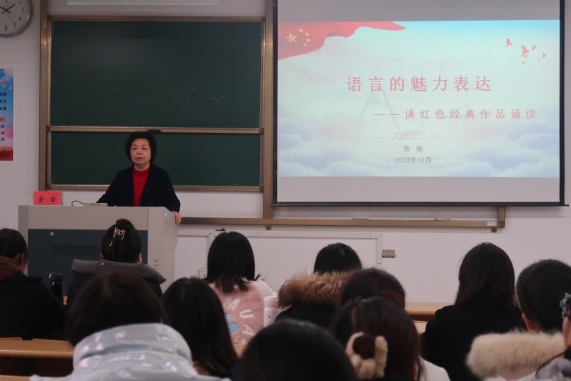 12月8日下午,国家级普通话测试员、南通市朗诵学会副会长、南通市教育局副调研员余宙应邀为我校ACG动漫 师生做了题为“语言的魅力表达——谈红色经典作品诵读”的专题讲座,70余名小学教育、学前教育专业学生参加了本次讲座。