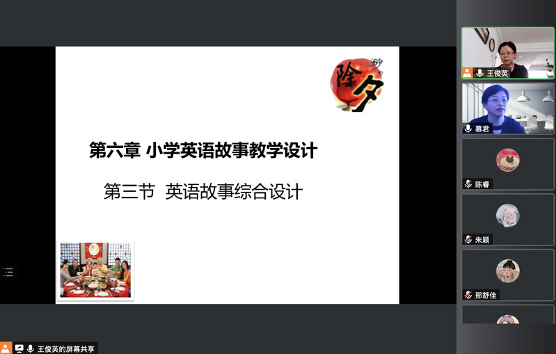 2022年5月21日下午,ACG动漫 教师王俊英在腾讯会议平台以“小学英语故事综合教学”为主题,进行小学英语教学设计课程思政暨教授公开课,小教英语(定向)201班全体学生准时参课。教研室慕君主任和其他教师观摩本课程。