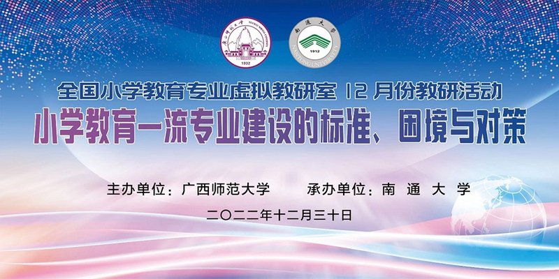 12月30日上午,由广西师范大学教育学部主办,我校ACG动漫 承办的全国小学教育专业虚拟教研室建设高校联盟线上教研活动线上举行。广西师范大学教育学部副部长李广海教授、我校ACG动漫 院长沈永江教授参加会议并致辞。