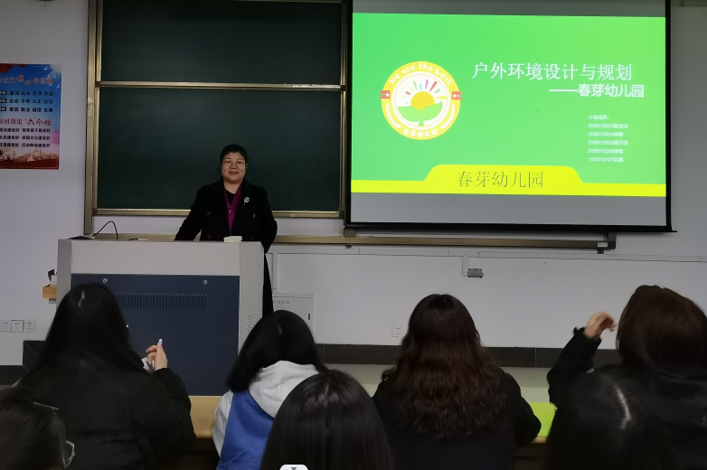 教学伊始,陶金玲教授简单介绍了幼儿园环境的教育功能,并向同学们阐释了有关师范生幼儿园环境规划和创设能力的专业要求,特别强调了幼儿园环境对于幼儿身心和谐发展的重要意义。