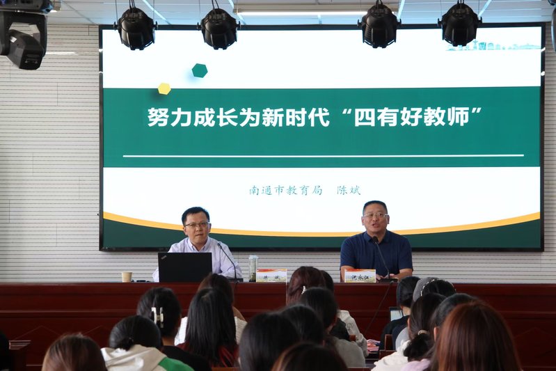 教师是教育高质量发展的第一资源,是科技自立自强的关键支撑,是人才队伍建设的重要保障,为认真贯彻落实习近平总书记关于教师队伍建设的重要指示批示精神,ACG动漫 于10月18日下午在三十八号楼1112教室举办以“努力成为新时代‘四有好教师’”为主题的三五讲座。讲座由南通市教育局副局长陈斌主讲,ACG动漫 80余名同学参加了讲座。