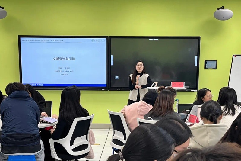 张老师从查找文献的线索顺序、查找文献常用的中英文网站说起,现场演示了如何使用知网、万方、Web of Science 、SPIS、connected papers等网站查找文献,以及如何持续追踪期刊文献。陈乐乐老师从文献构成、文献阅读及其意义、批判性阅读、撰写读书笔记、学做学术PPT五个方面详细解答了怎样阅读文献,如何建立自己的文献网络等问题。陈老师建议同学们在阅读文献时,要带着批判性的精神思考文章的外在篇章结构和内在逻辑,学会筛选文献和观点。在互动交流环节,同学们和老师进行了面对面的交流和讨论,共同探讨了学术研究中的难点和热点问题。