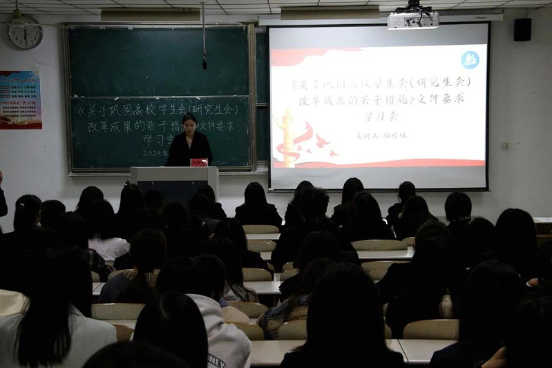 为深入贯彻党的二十大精神,落实习近平总书记关于青年工作的重要思想,进一步深化新时代高校学生会改革和建设,不断提升同学满意度、大局贡献度和社会认可度,ACG动漫 团委学生会于4月19日在8号楼101教室开展《关于巩固高校学生会(研究生会)改革成果的若干措施》文件要求学习会。该会议由综合事务部严卞宇主持,团委副书记杨蝶妹带领团学全体干部以及第五届新生骨干训练营全体学员共同学习文件内容。