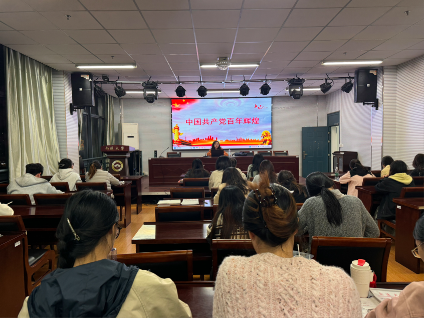 学院学工办副主任、研究生第二党支部书记康月莹老师以《中国共产党百年辉煌》为题带领学员回顾了党百年奋斗历程。她指出,深入学习党的四个历史阶段,不仅有助于洞察规律、明确方向,也是党性锻炼的重要部分。学习党史能增强对党的认同,也是传承经验、加强思想理论建设的关键。