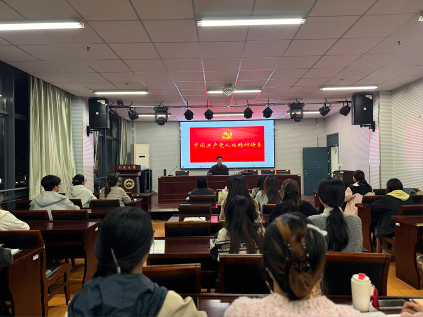 学院研究生第一党支部书记刘翼老师以《党员的权利和义务》为题开展专题报告。她从共产党员的基本条件、角色定位、责任担当以及权利保障和义务履行三个维度进行解读,帮助同学们全面、深刻地理解党员权利和义务。