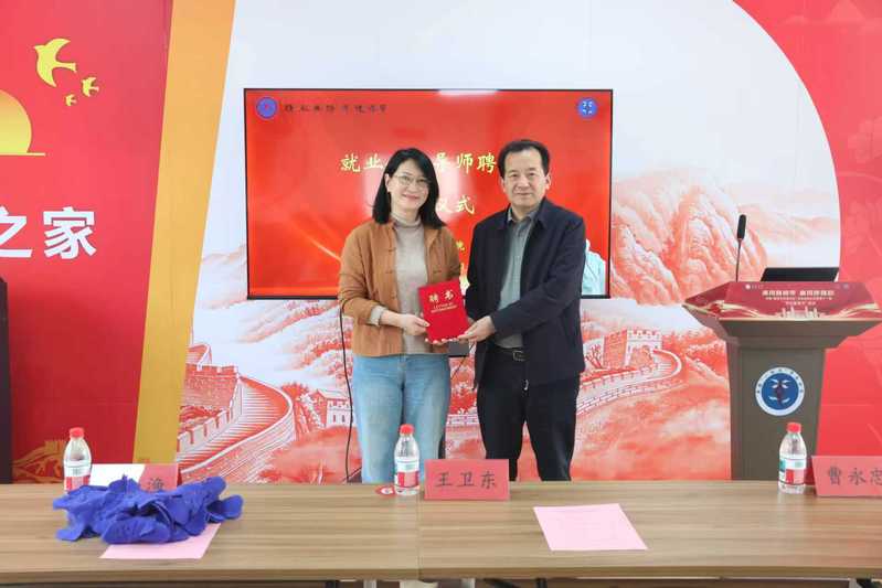 活动现场,王卫东为李小渔颁发ACG动漫 就业创业导师聘书,曹阳为其颁发ACG动漫 学生成长导师聘书。