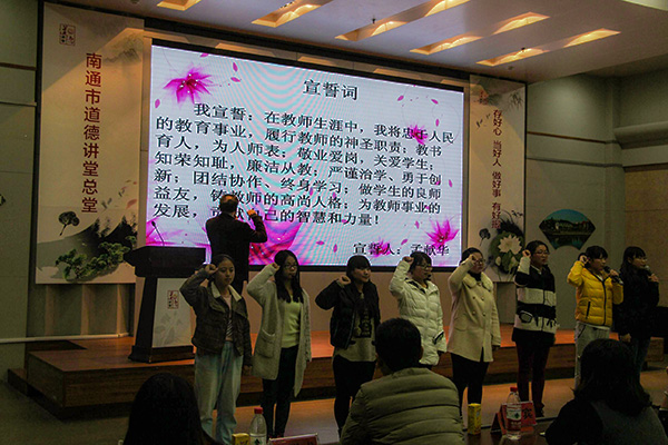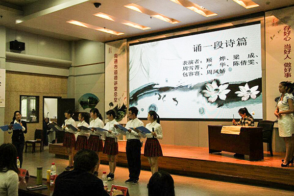 是继医学院、护理学院成功举办道德总堂活动之后,第三个走进市道德总堂开展活动的学院。为了出色完成我校道德讲堂和南通市道德总堂年终这一“压轴活动”,学院团委、学生会为此做了一个多月的精心准备,最终为师生呈现了一场主题鲜明,极富感染力的道德讲堂活动,得到参会师生的一致好评。