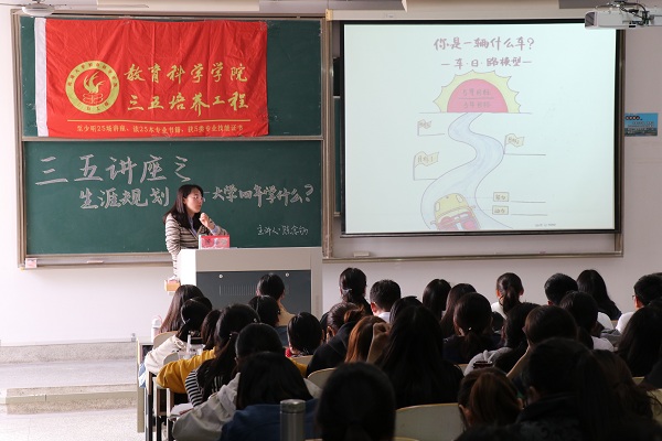 10月24日13:30,ACG动漫 在主校区8号教学楼309教室成功举办了以“生涯规划——大学四年学什么”为主题的三五讲座,本次讲座由陈念劬老师担任主讲嘉宾,来自教科院的160余名本科生参与了此次讲座。