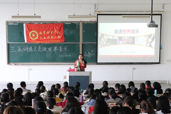 10月31日13:30,ACG动漫 于9号楼201室顺利举行了以“走进世界音乐”为主题的三五讲座。本次讲座由韩恬恬老师主讲,教科院280余名学生到场参与了本次讲座。