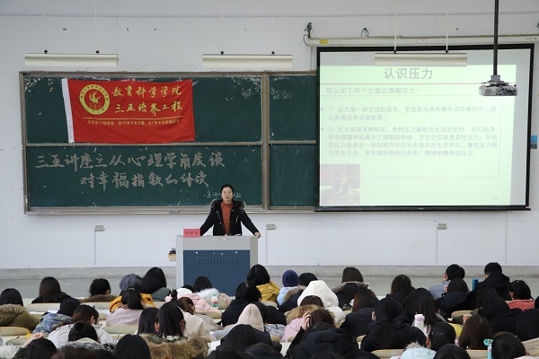 此次讲座旨在指导同学们从心理学角度了解压力来源以及学习科学缓解压力的方法,在今后的学习和生活中学会自我调节,减少压力带来的消极影响,从而提高自身的幸福指数。