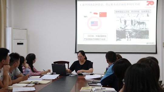 10月12日下午,ACG动漫 本科生党支部开展“不忘初心、牢记使命”主题教育活动,支部书记陈淑慧以“70年奋斗历程”为主题为支部党员上课。