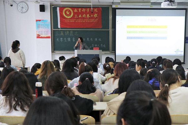 10月21日,ACG动漫 于八号教学楼203教室举办以“大学生宿舍人际关系漫谈”为主题的三五讲座。此次讲座由蔡婧老师主讲。教科院160余名学生到场聆听讲座。