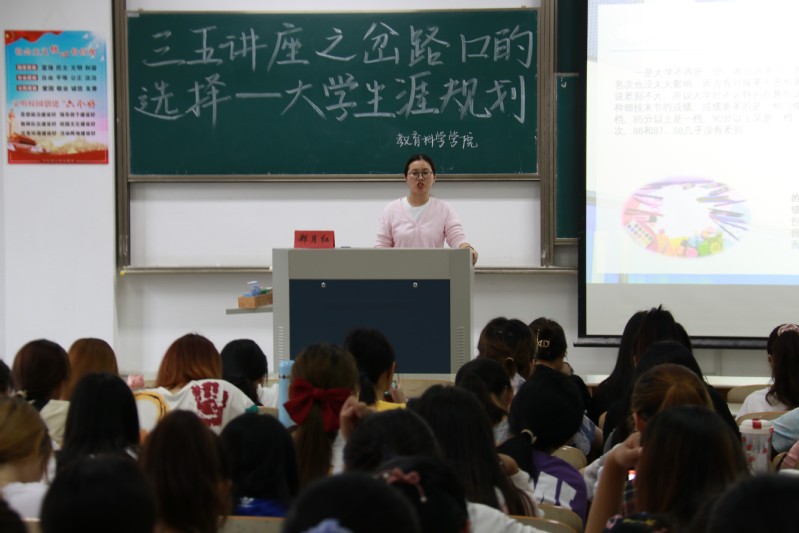 2021年6月3日,ACG动漫 在主校区8号教学楼203教室成功举办了以“岔路口的选择——大学生涯规划”为主题的三五讲座。此次讲座由郑月红老师主讲,小学教育师范201班、教育技术专业191、192班、小学教育语文(定向)191班的学生参加了本次讲座。